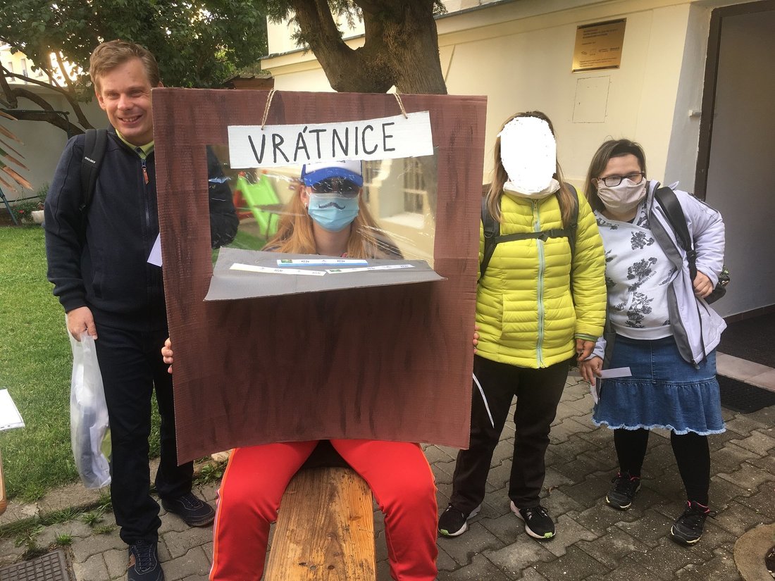 Po dlouhých dvou měsících konečně otevíráme v omezeném režimu Centrum denních služeb. Každé ráno všichni povinně procházejí přes námi vyrobenou „vrátnici“. Dodržujeme všechna opatření, ale hlavně jsme rádi, že jsme zase konečně spolu!