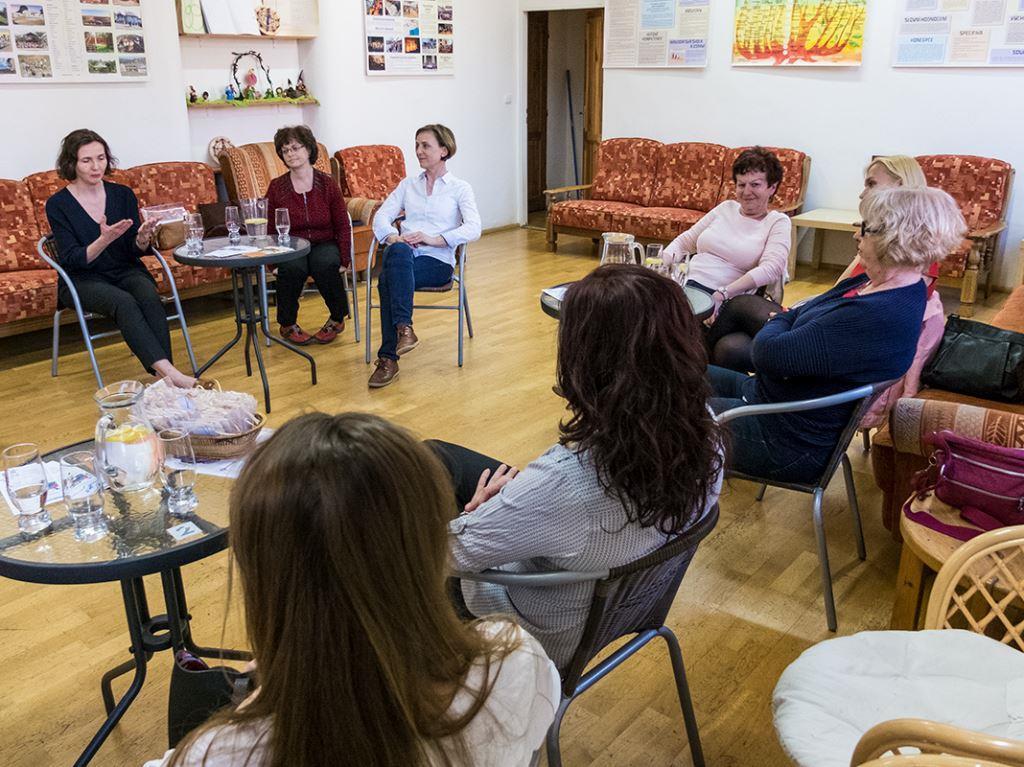 V rámci projektu „Mluvíme pro dobrou věc“ vybrali v průběhu uplynulého čtvrtletí studenti a další dárci 18 190 Kč, abychom z nich mohli zakoupit „potřebné věci“ – vybavení do našeho azylového Domova pro matky s dětmi. Při slavnostním předání v sále Okamžik seznámila přítomné s využitím daru Ivana Jelínková, vedoucí azylového Domova. Do zařízení zakoupí pračku, vysavač, digestoř a mixér. Následoval živý rozhovor o práci v azylovém zařízení. Na závěr poděkovala předsedkyně dozorčí rady Diakonie Jana Kellnerová přítomným lektorkám a studentům z Restonu, že myslí na i na takové lidi, jimž osud tolik nepřeje: „Nejsou vám lhostejní. V tom je naděje v této době plné negativních zpráv“.