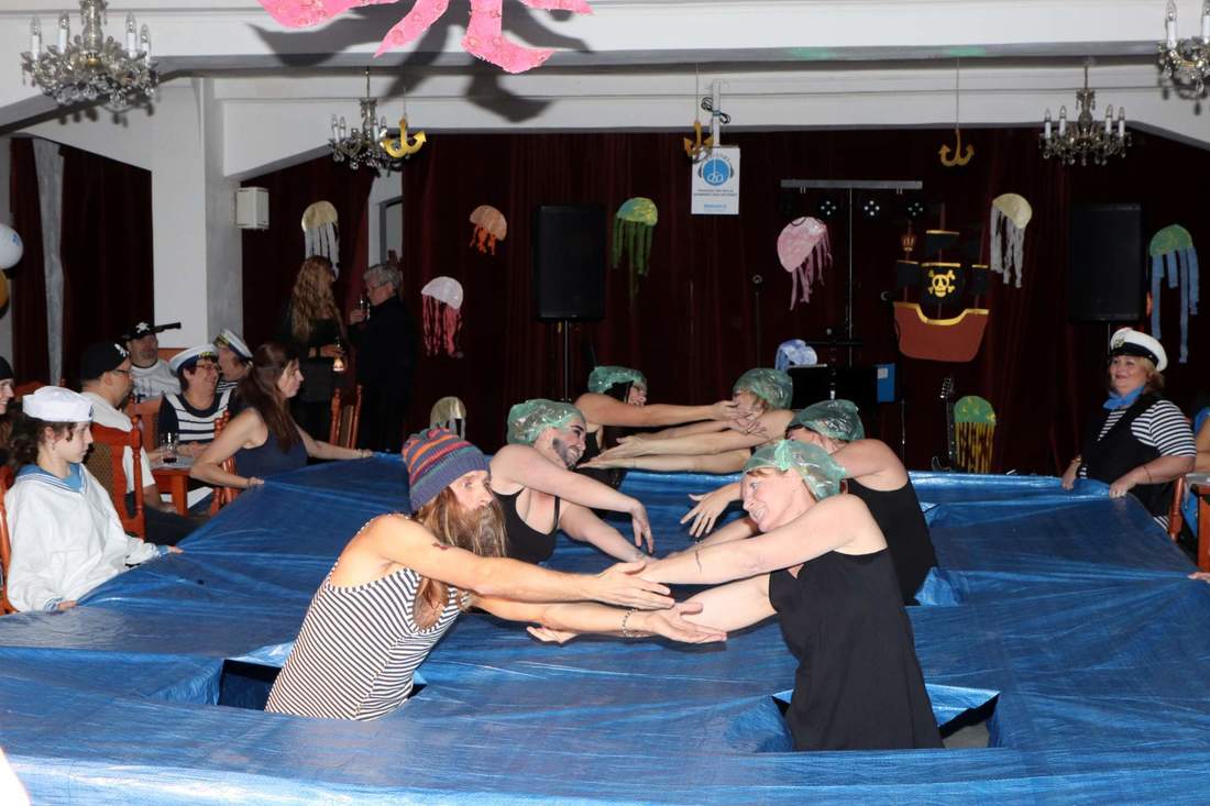 Do vyprodaného sálu se sešlo neuvěřitelné množství masek. Organizátoři přivítali hosty originálním překvapením – akvabelovou sestavou! K tanci a poslechu skvěle hrála kapela LP – Tandem. Zpestření v podobě pirátského přepadení jsme udělali Hospicu sv. Štěpána, který měl v tu dobu ples ve vedlejším sále a chvilku jsme tak strávili na parketu společně.