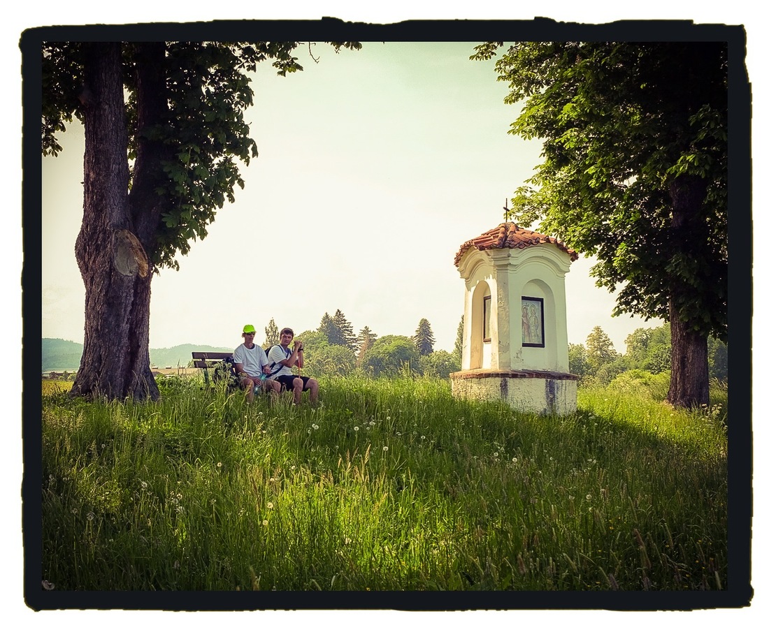 Po necelých 7 km nás čekala první kontrola, kde jsme dostali razítko do mapy. Abychom udrželi veselou mysl a zdravou morálku, využili jsme zázemí v místní hospůdce. Vzhledem k horku a nastupující únavě nám osvěžení přišlo více než vhod. Poté jsme se vydali na druhou část trasy, na jejímž konci byl každý odměněn cílovým razítkem, horalkou a hlavně botičkou. Snad nebude jediná a za rok k ní přidáme další!