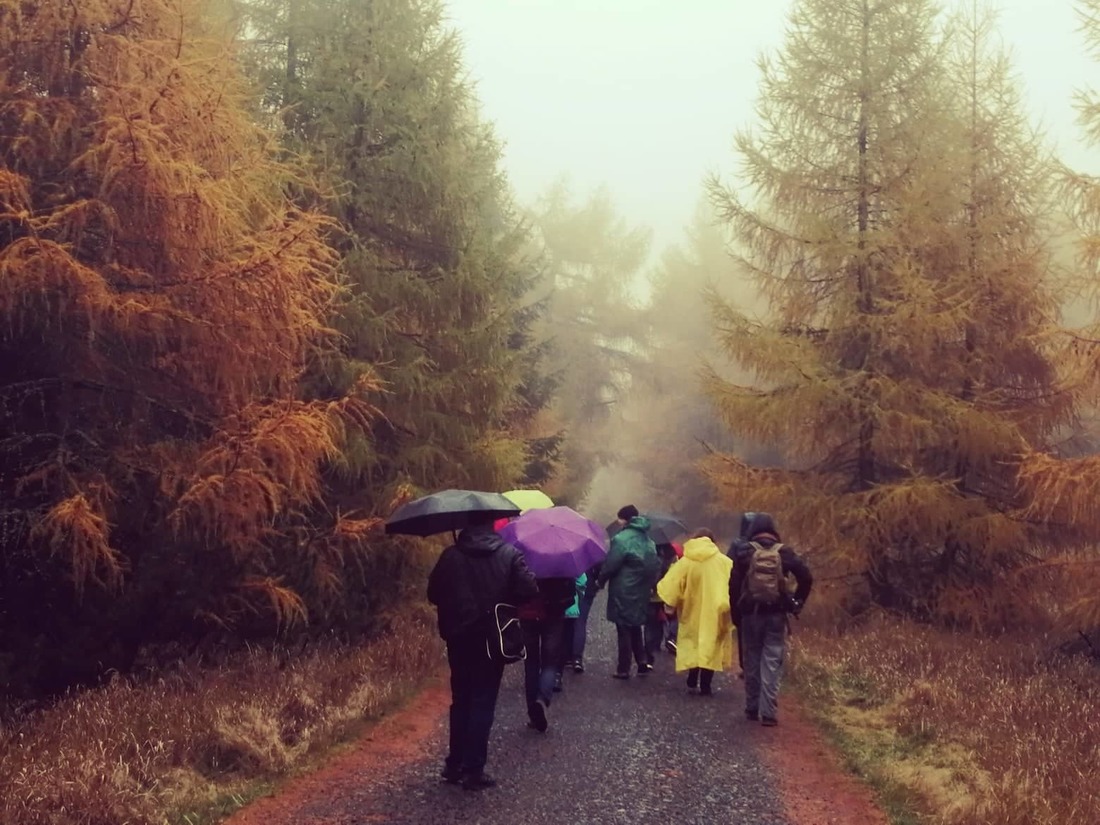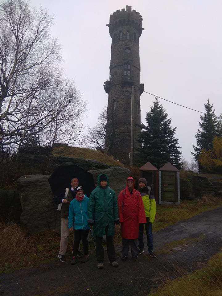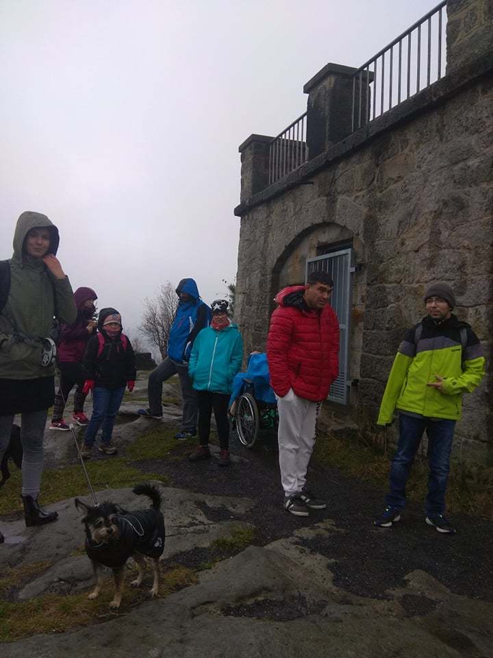 V zaplněném autobusu panovala skvělá nálada. Deštivé a studené počasí jsme přechytračili pláštěnkami a teplým oblečením. Děčínský Sněžník jsme pokořili! Výhled vzhledem k mlze nebyl sice kdovíjaký, ale aspoň se nám rychleji pochodovalo zpět do nížiny, kde jsme se zahřáli a zasytili v restauraci u parkoviště.