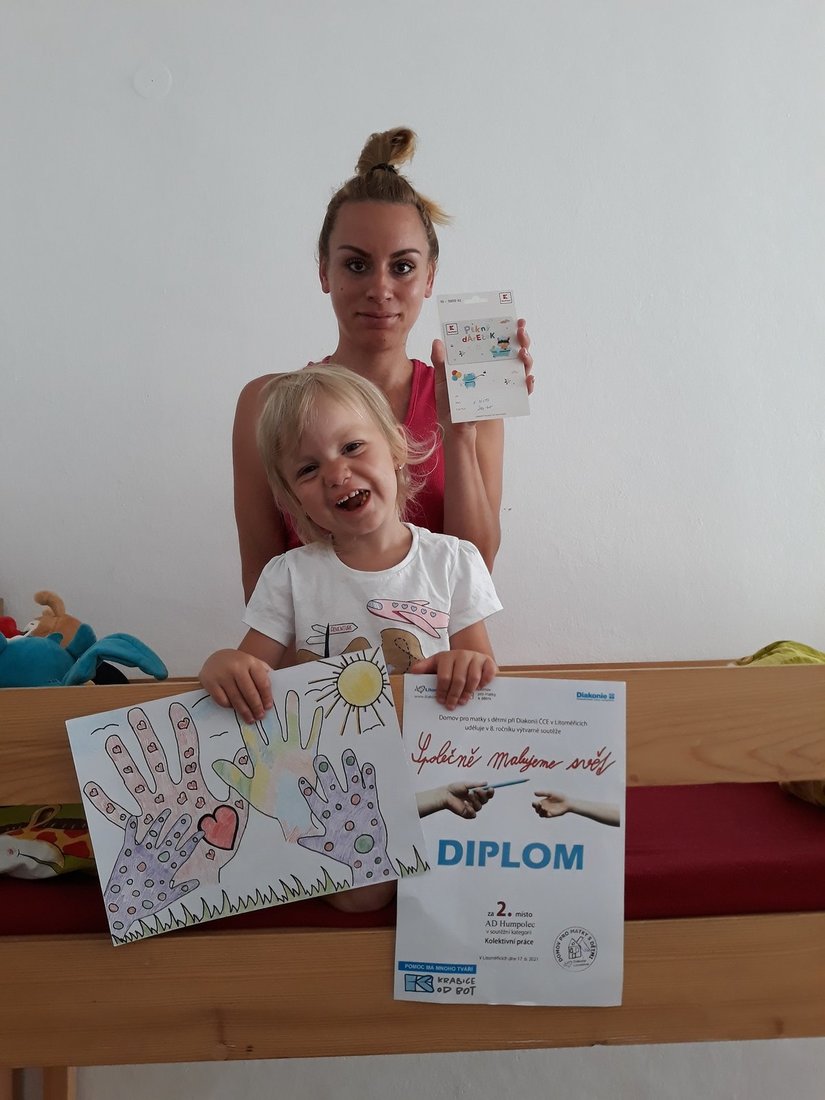 Děkujeme projektu Krabice od bot, ze kterého byly pořízeny ceny pro vítěze. Děkujeme nejen autorům obrázků, ale i pracovníkům z azylových domů, kteří klienty podporují v tvoření, Vyhlášením výsledků to navíc nekončí. Vítězné obrázky budou zdobit chodbu Diakonické akademie v Praze. Instalace obrázků, která proběhne v srpnu je náš „Domovský“ rituál. Je to vždy velký zážitek nejen pro děti, ale i pro pracovníky.