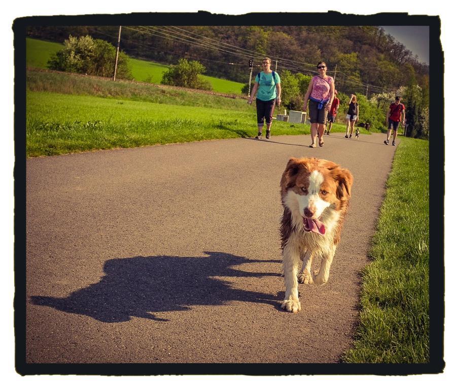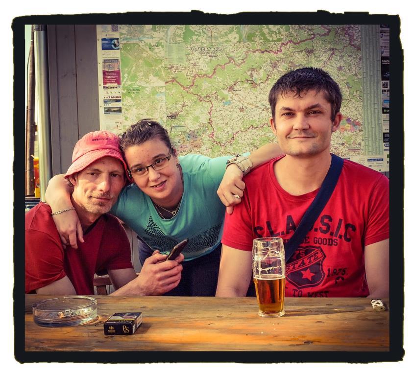 Třináct kilometrů dlouhá tréninková trasa vedla ze Žalhostic do Církvice a zpět do Libochovan. Již od startu bylo znát, že ve výkonnosti borců jsou značné rozdíly, skupina se držela jakžtakž pohromadě jen do prvního kontrolního bodu – kantýny u přívozu ve Velkých Žernosekách. Pivko, sluníčko a svačinka udělaly své, takže hned v následujícím úseku se „peleton“ značně roztrhal. Nedočkaví chrti vyrazili i s Péťou na vozíku kupředu a my vzadu marně spoléhali na poučky o přepáleném začátku a postupném zvolnění tempa. Naštěstí nás zachránila prosluněná zahrádka restaurace v Libochovanech, kde jsme se všichni opět shledali. Pro některé účastníky to byla cílová stanice – došly síly. Ostatní pokračovali, tentokrát již společně, na obrátku do Církvice, ti nejzdatnější, včetně Berta a Pavly si trasu prodloužili až do Ústí!