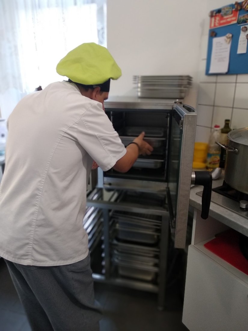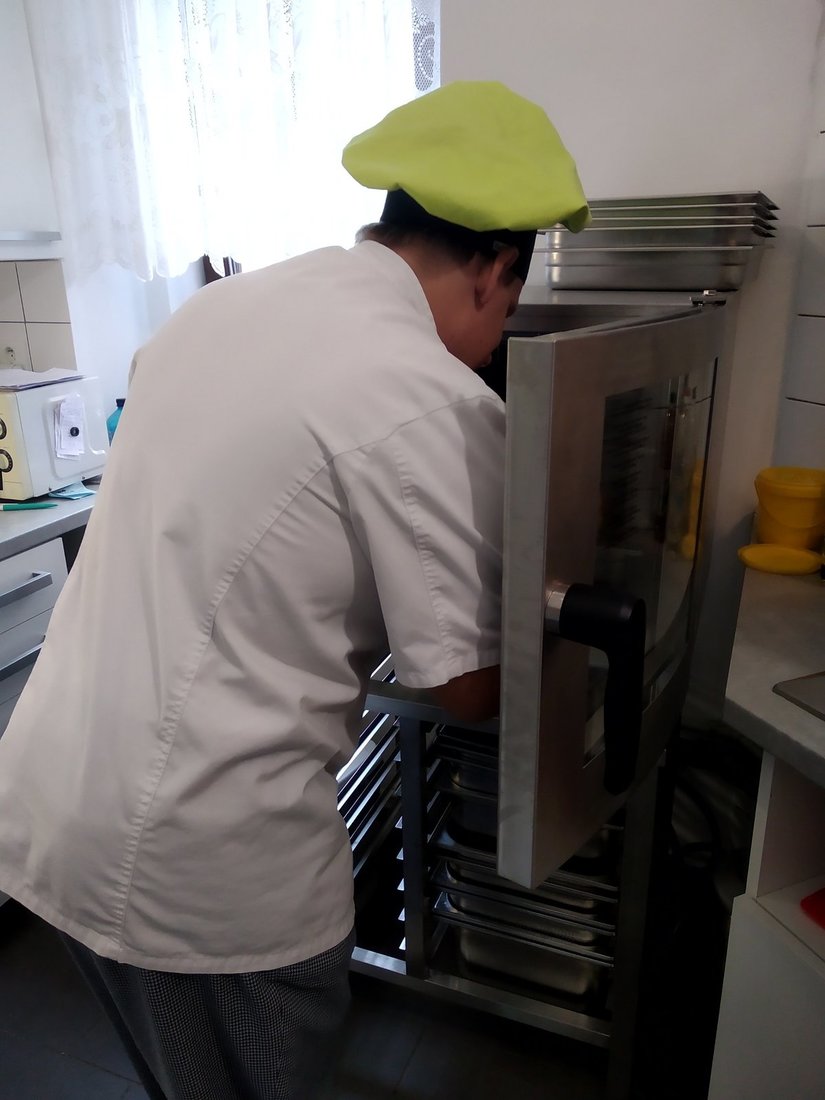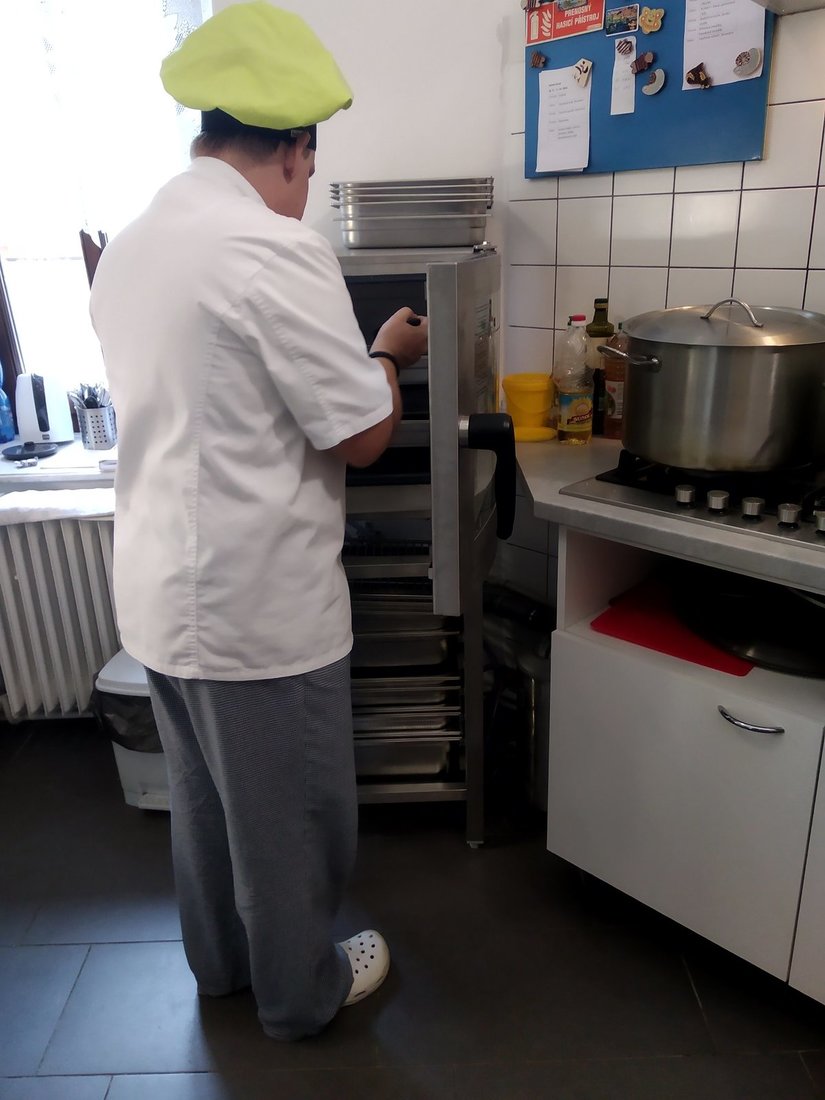 Opravdu chutnou novinkou je ale náš konvektomat ve výcvikové kuchyni – zařízení k vaření, pečení a další zdravé a rychlé úpravě pokrmů. Už je nás, klientů a zaměstnanců, prostě tolik, že nám k vaření obědů nestačí obyčejný sporák.