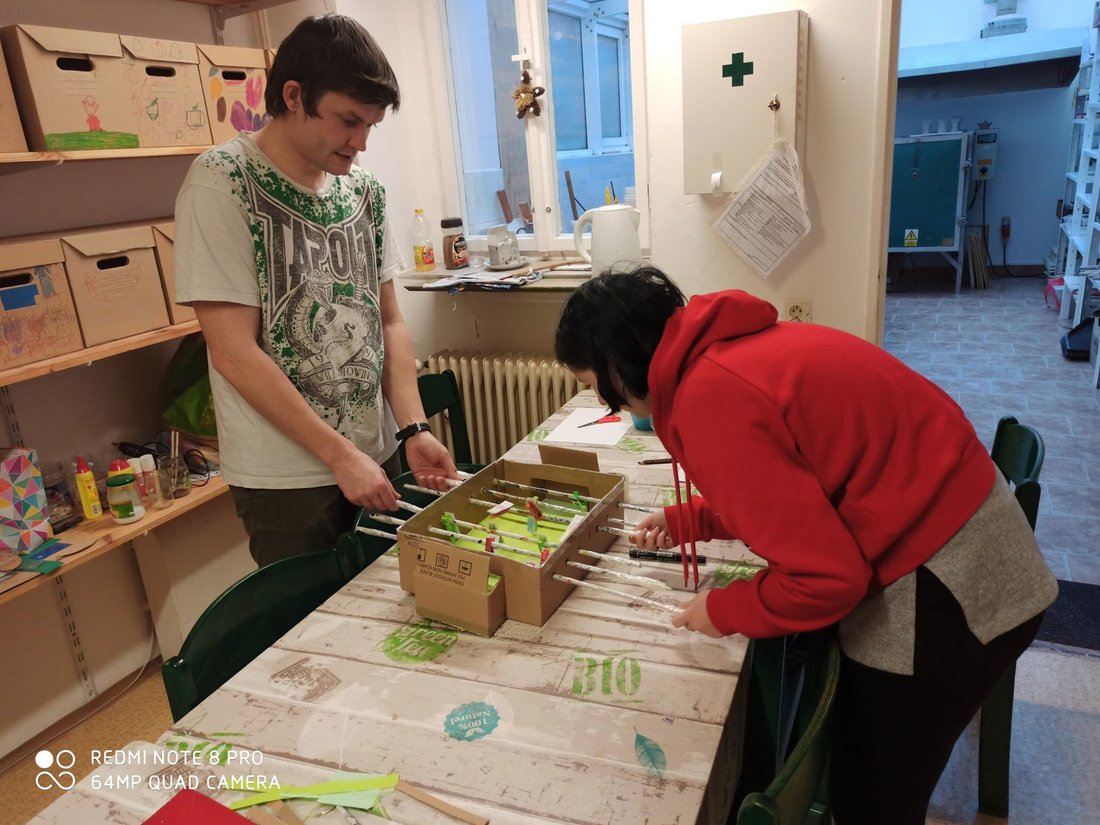 Tento týden jsme s dobrovolnicí Petrou vyráběli a následně si i zahráli stolní hru. Předtím zase Ivona s partou z chráněného bydlení a podpory samostatného bydlení vyráběla valentýnská srdce. Jindy zajdeme třeba na bowling nebo do kina…