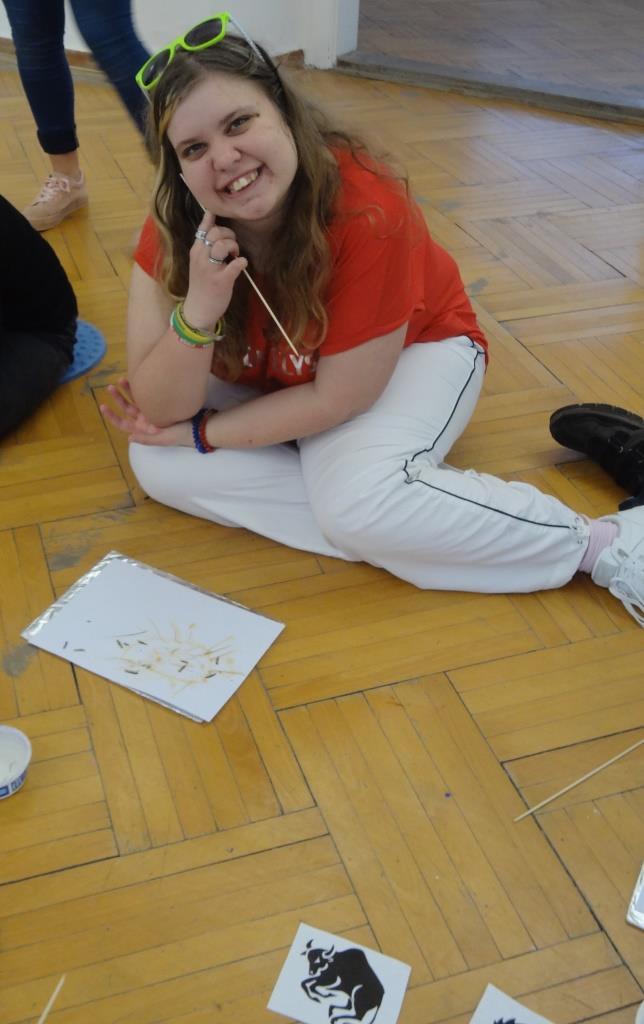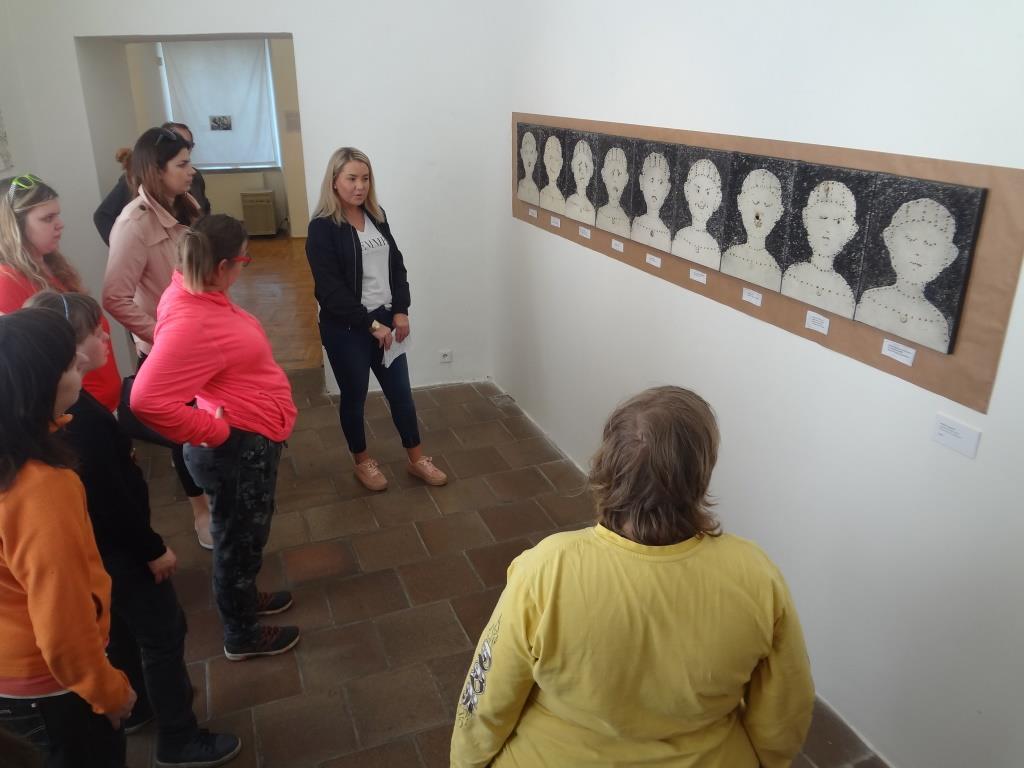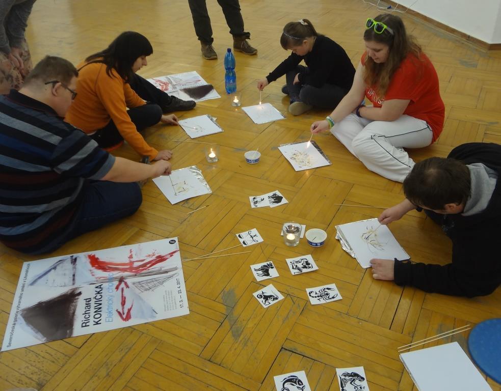 Celá výstava tohoto známého umělce byla o jeho práci s ohněm. Viděli jsme obrazy malované nažhavenou jehlou, fotky umělcovy rodiny s propálenými ornamenty a podobně. Na konci výstavy jsme si vyzkoušeli techniku, kterou výtvarník pracuje. Zapálenou špejlí jsme malovali ohněm na papír. Výtvory, které byly velice zajímavé a originální, jsme si nakonec odnesli s sebou.