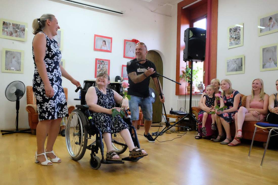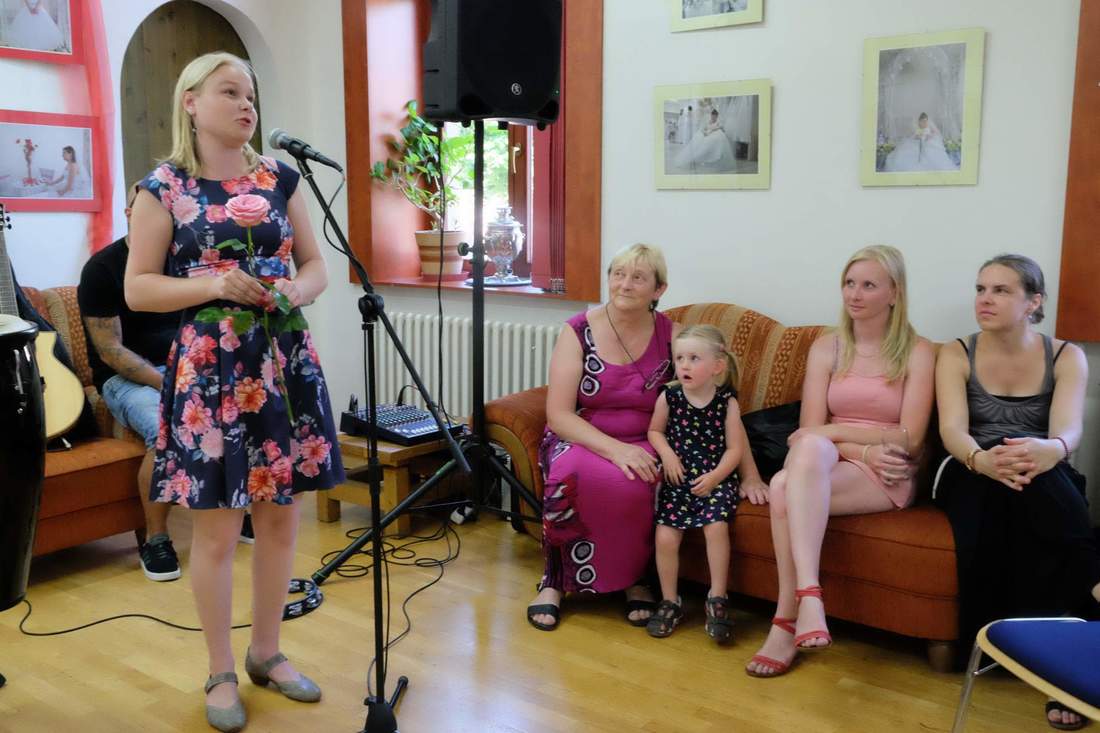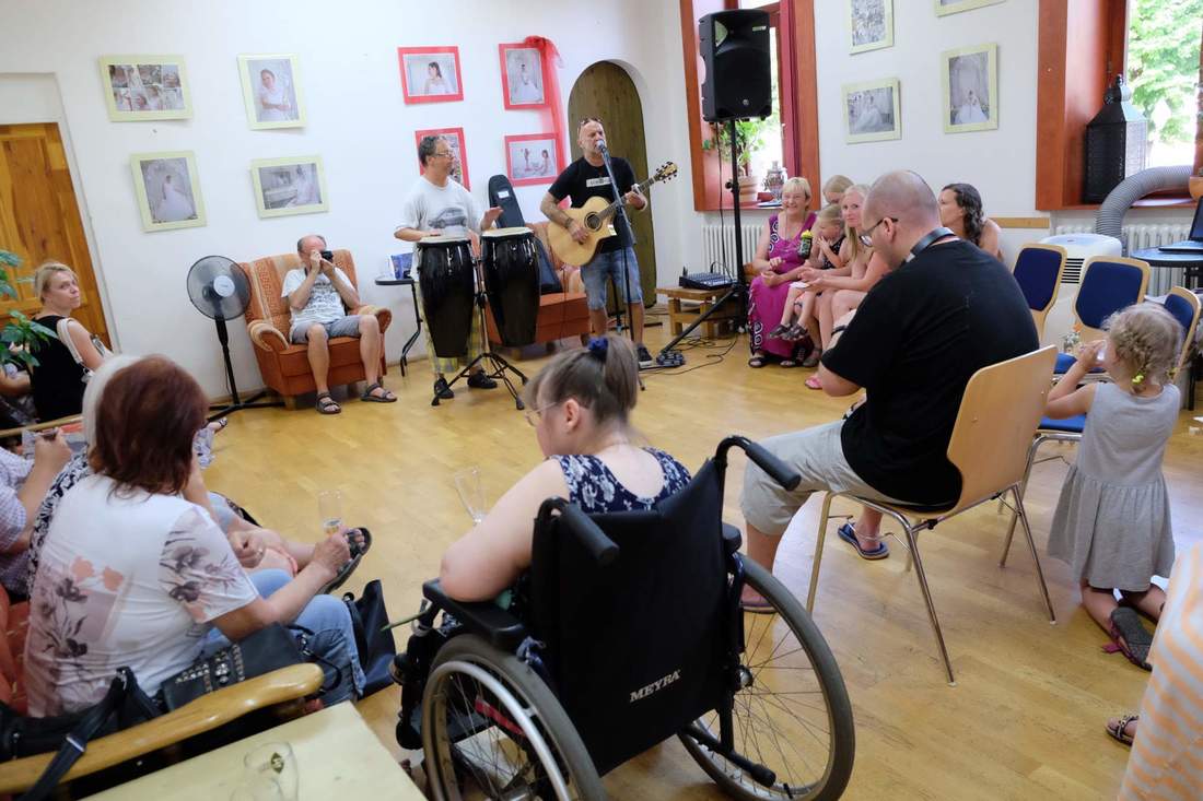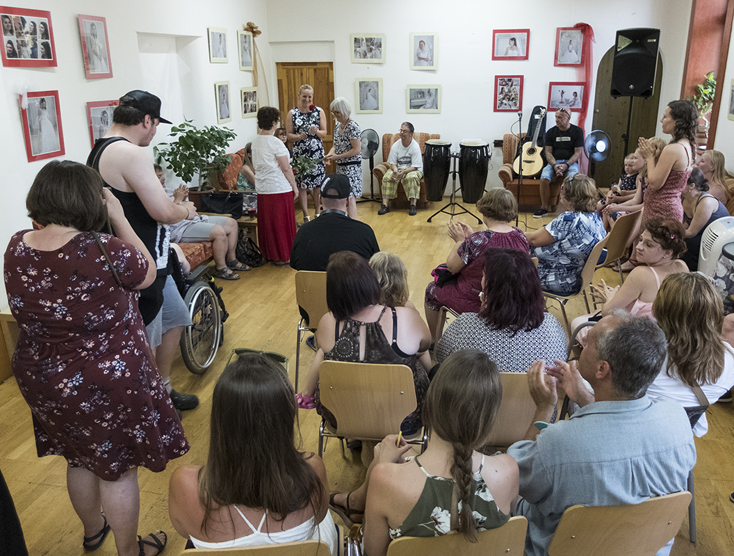 Ve středu 26. 6. 2019 se v sále Okamžik konala vernisáž k výstavě s názvem „Zářivá krása“, která byla výsledkem prožitkové cesty klientek Diakonie ČCE v Litoměřicích. Vernisáž byla završením zhruba půlročního setkávání klientek při artefiletické skupině, kterou vedla pracovnice Diakonie Helena Hingarová.